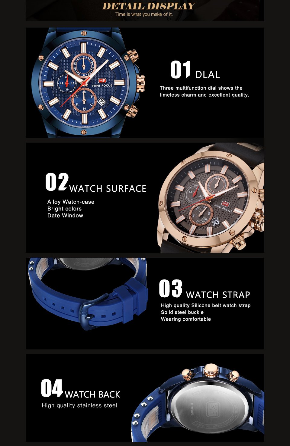 - Features: Waterproof,calendar,Small dial